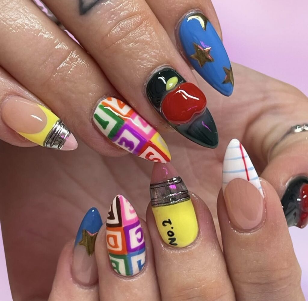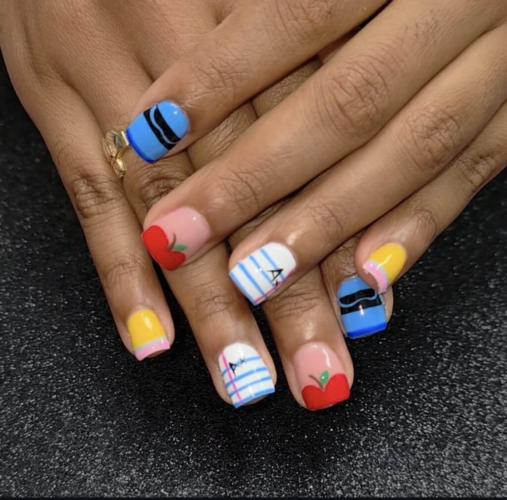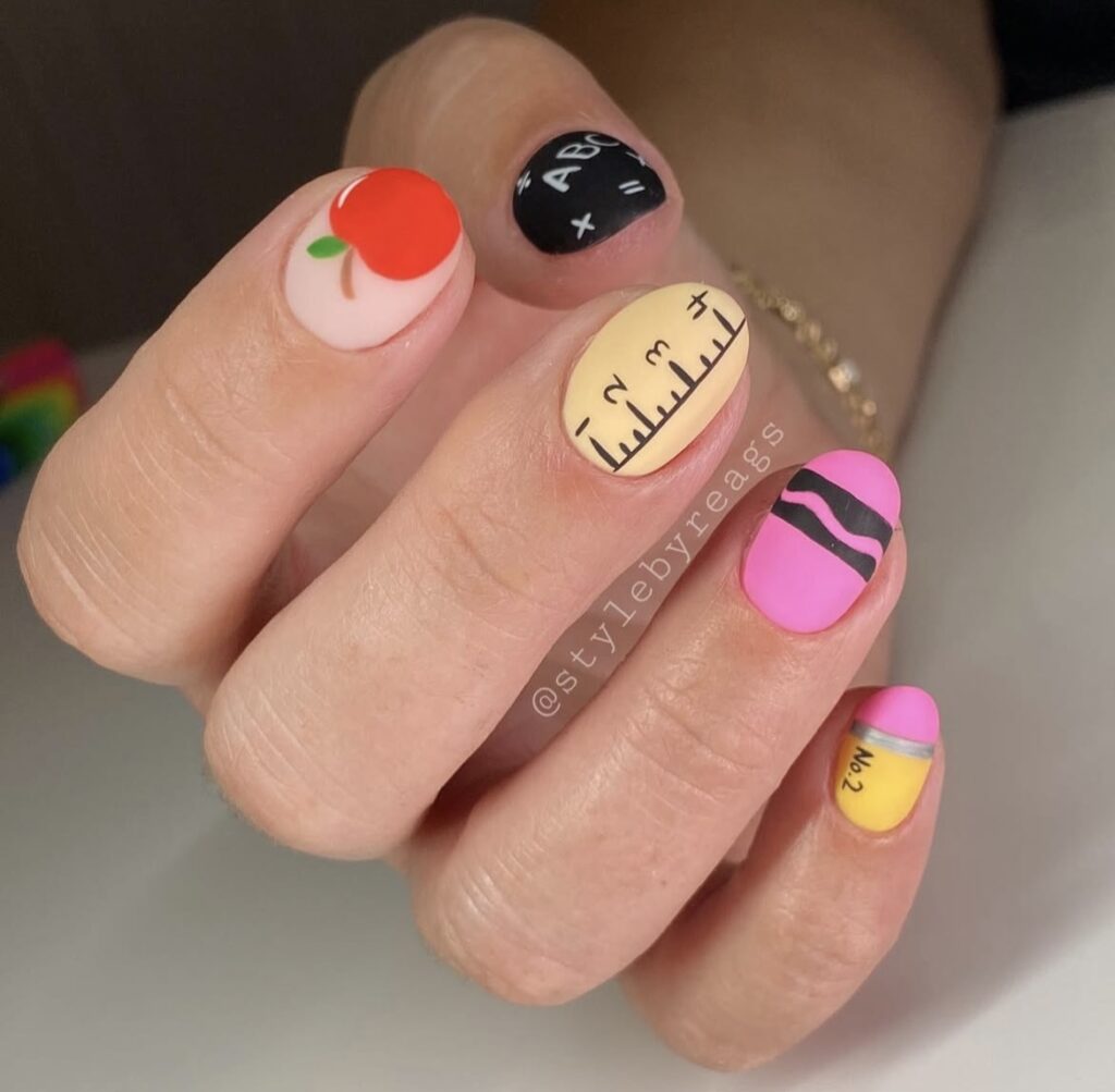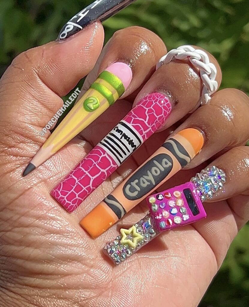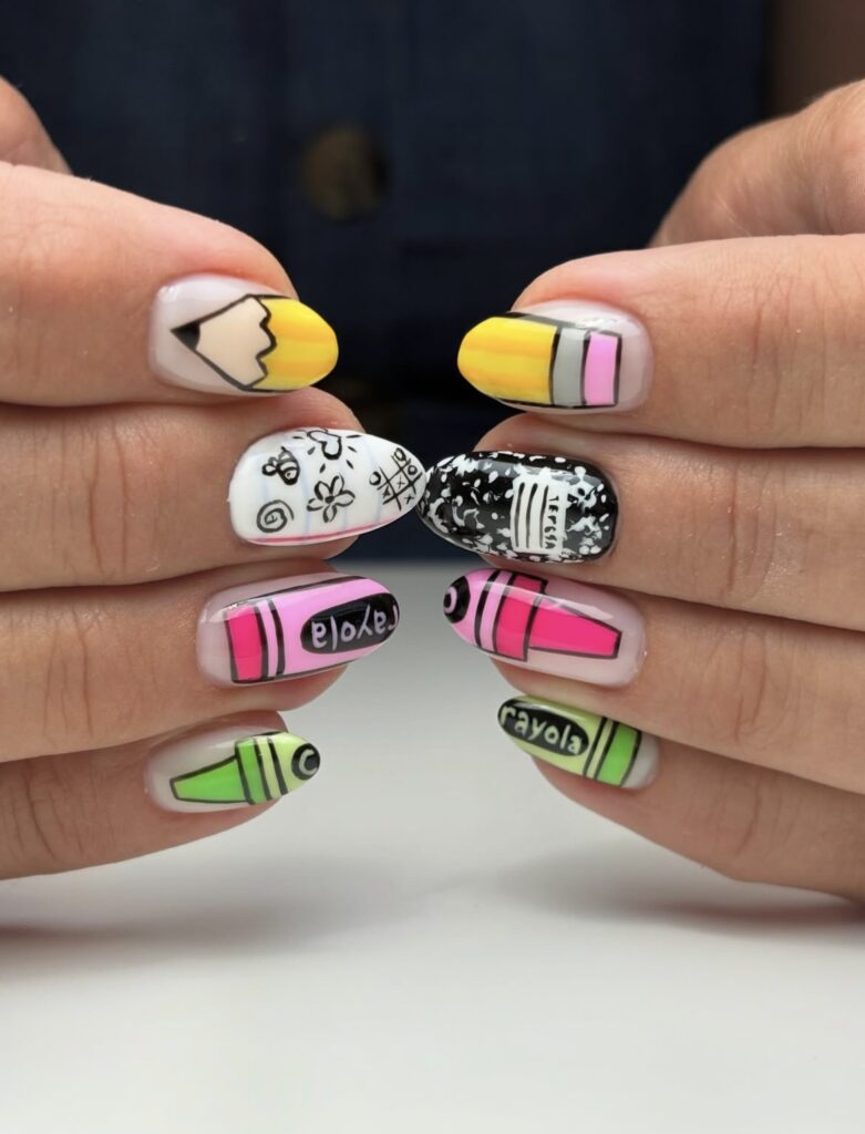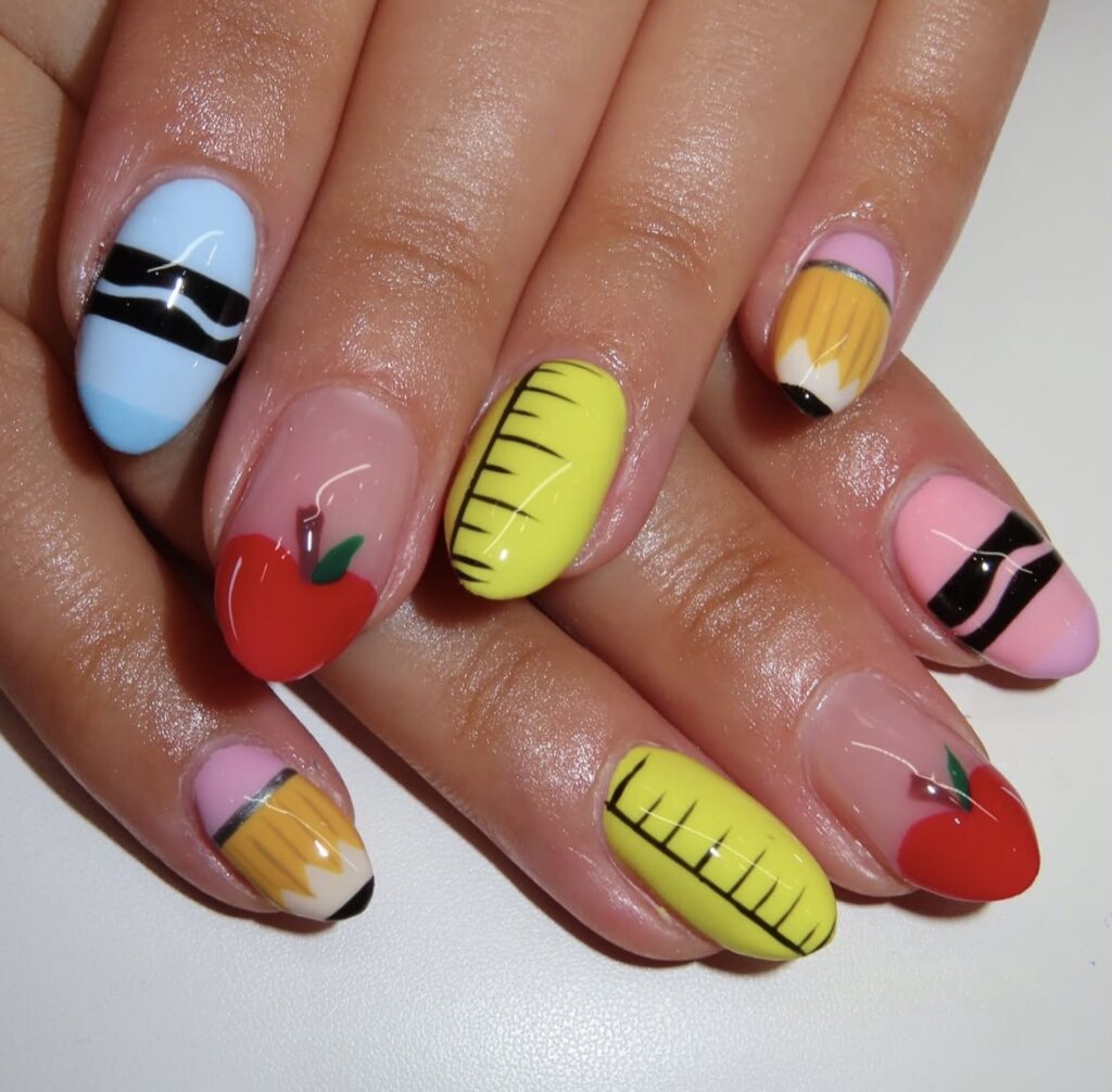 A little mix of color, a little touch of creativity – classroom essentials reimagined as nail art!
