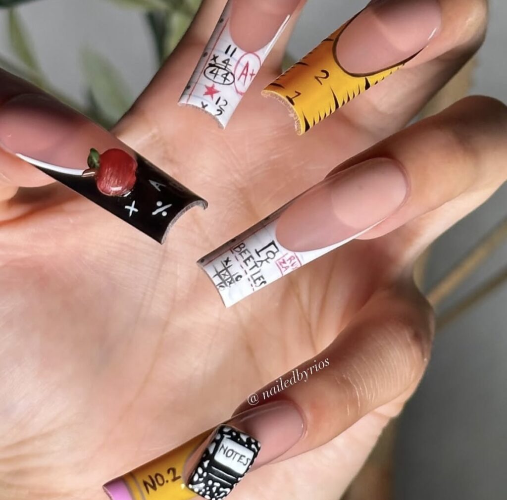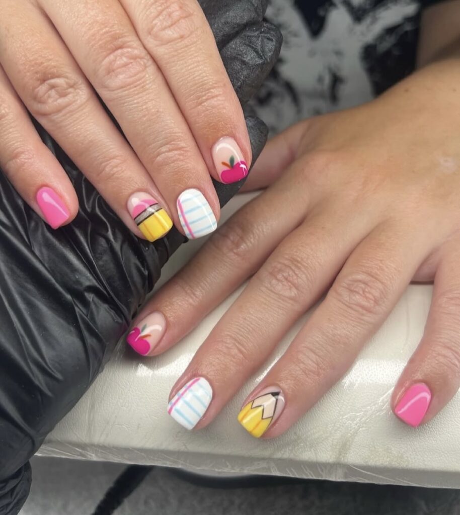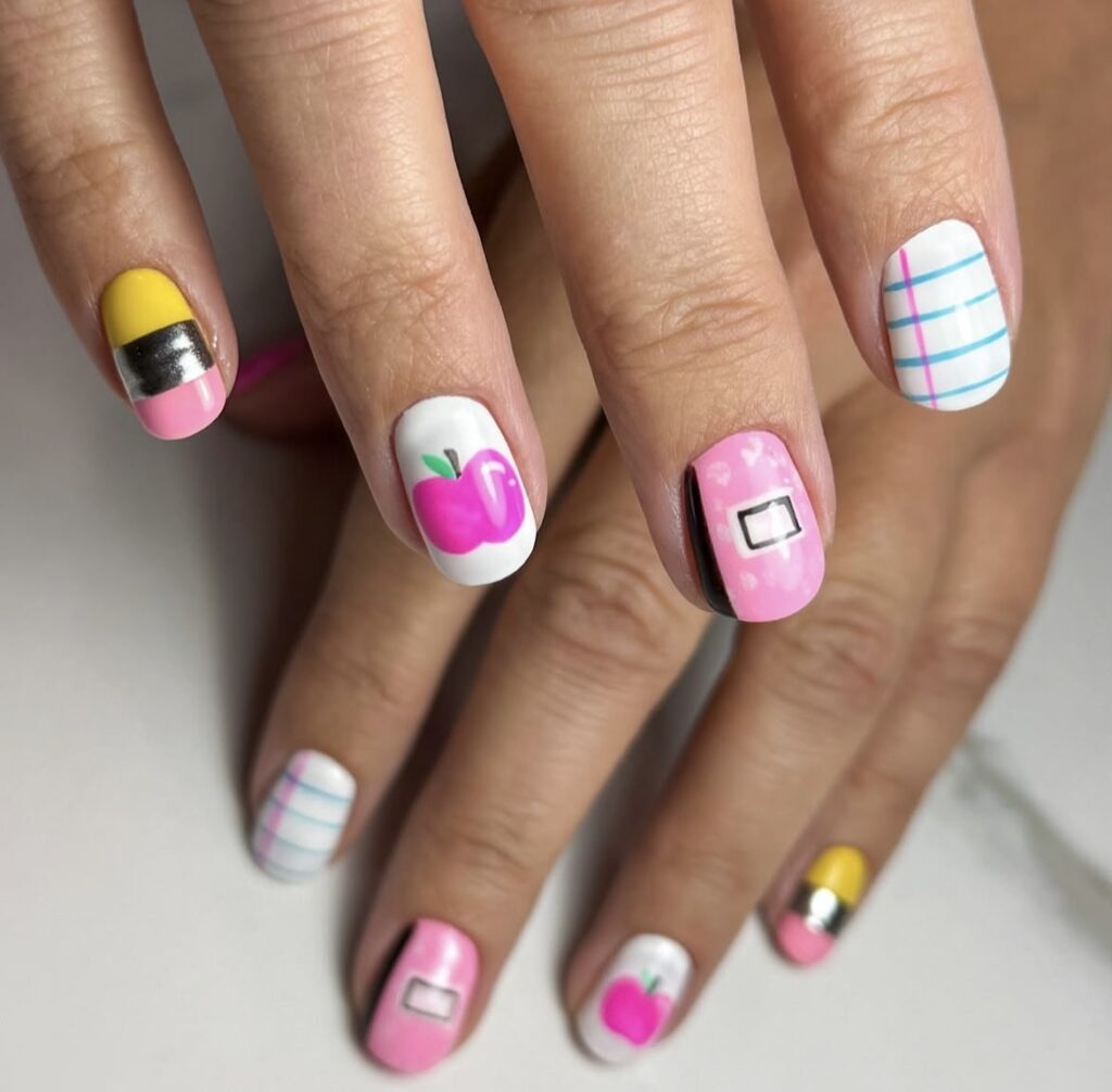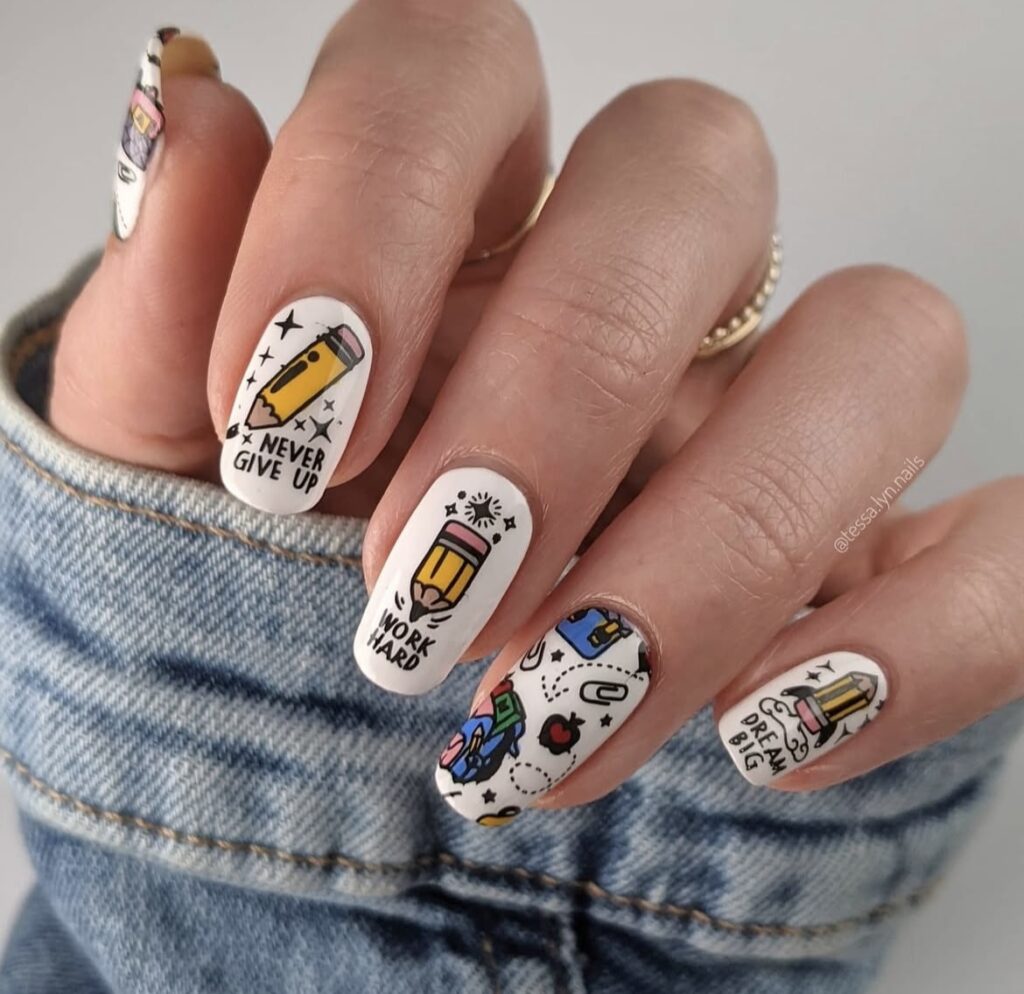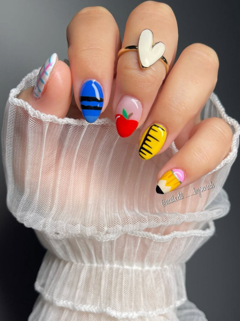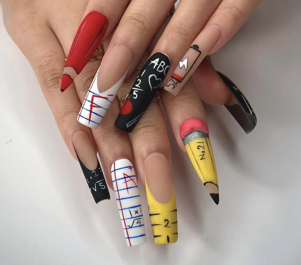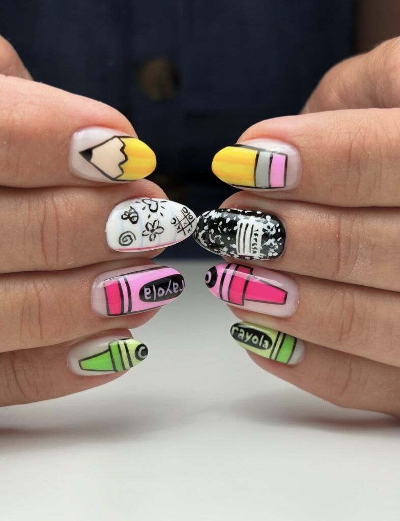 A little mix of color, a little touch of creativity – classroom essentials reimagined as nail art!