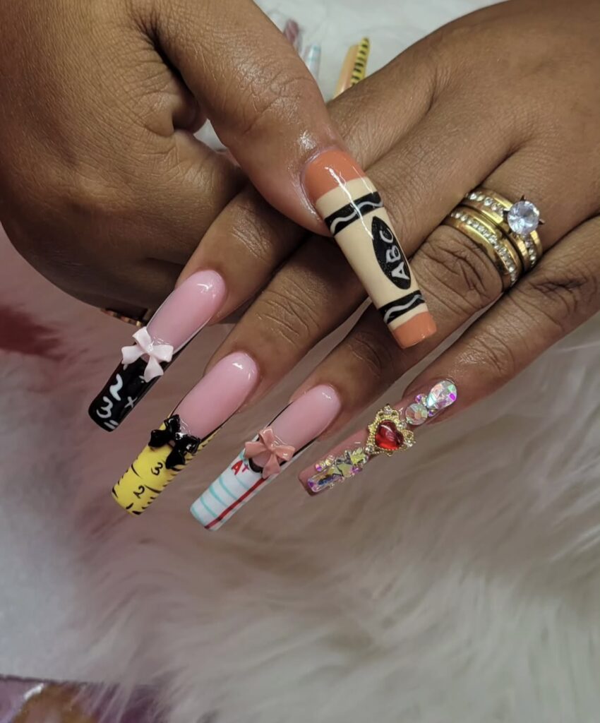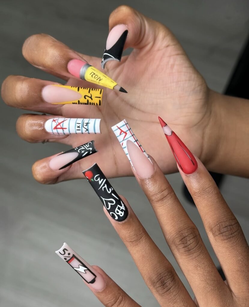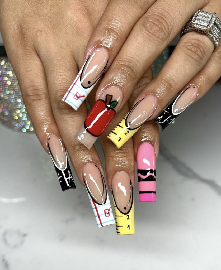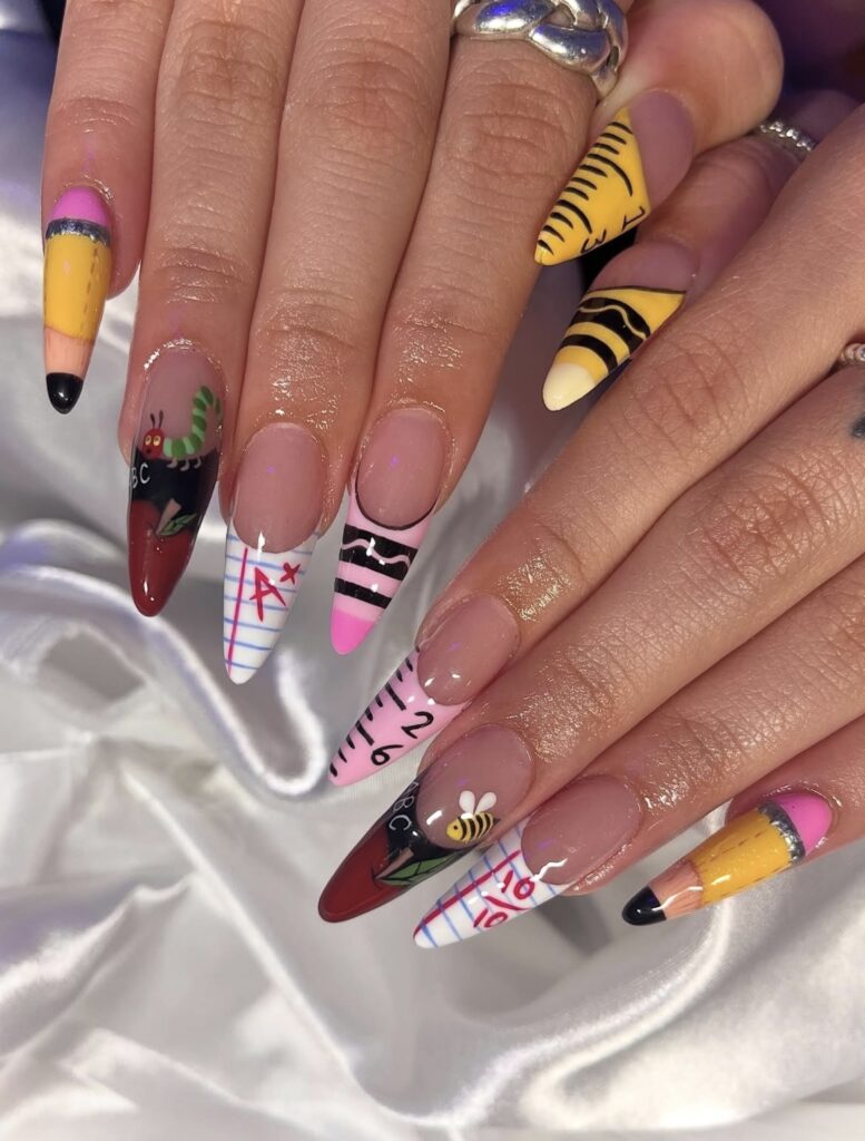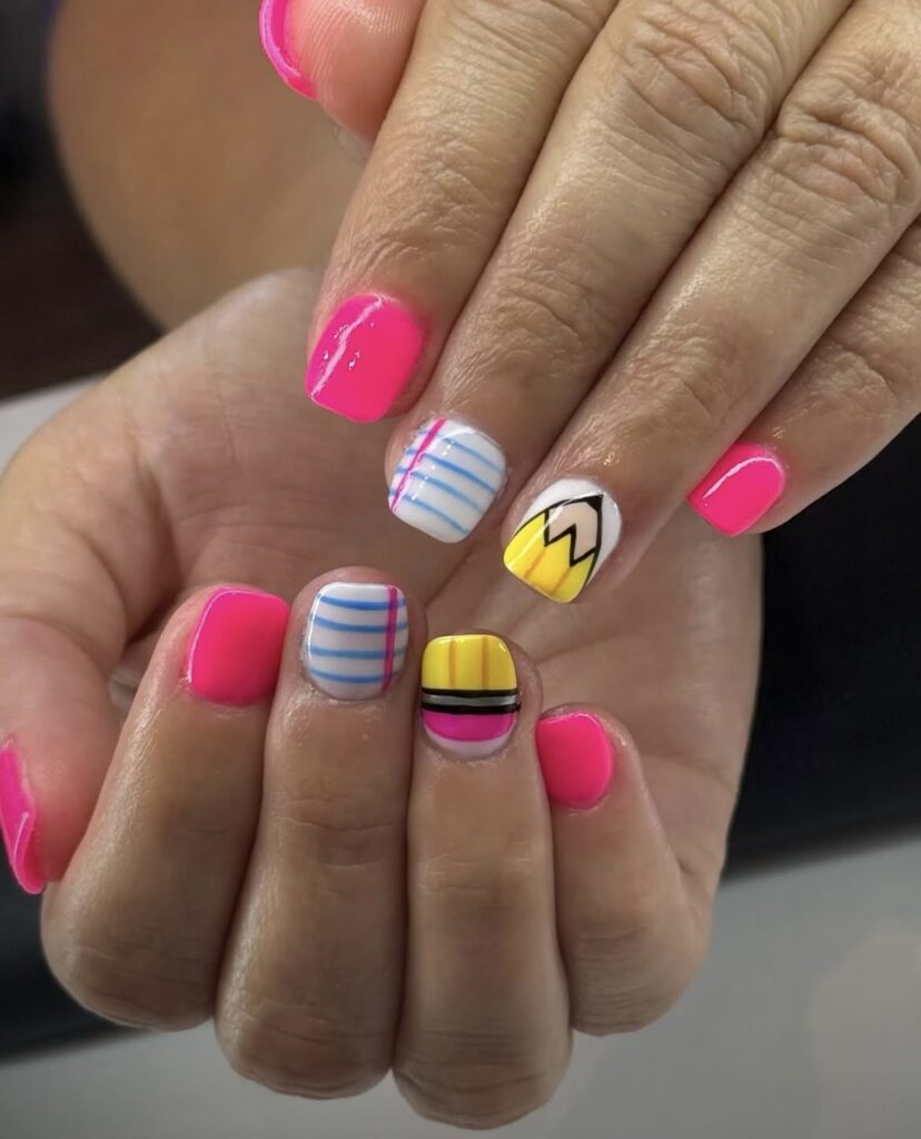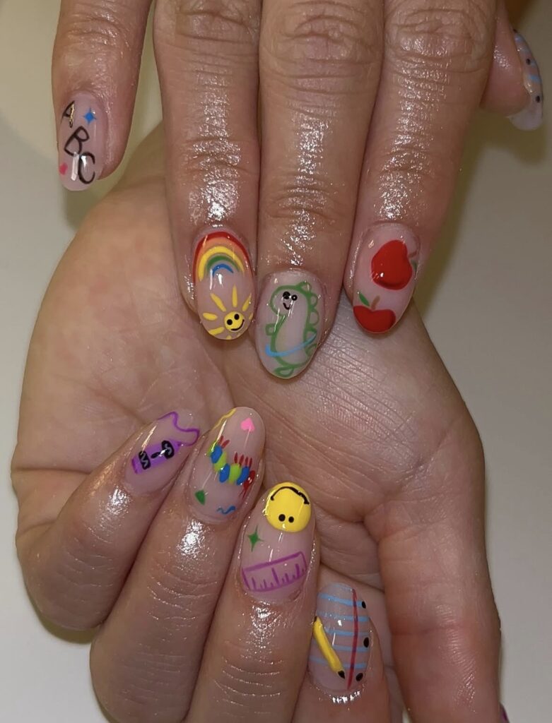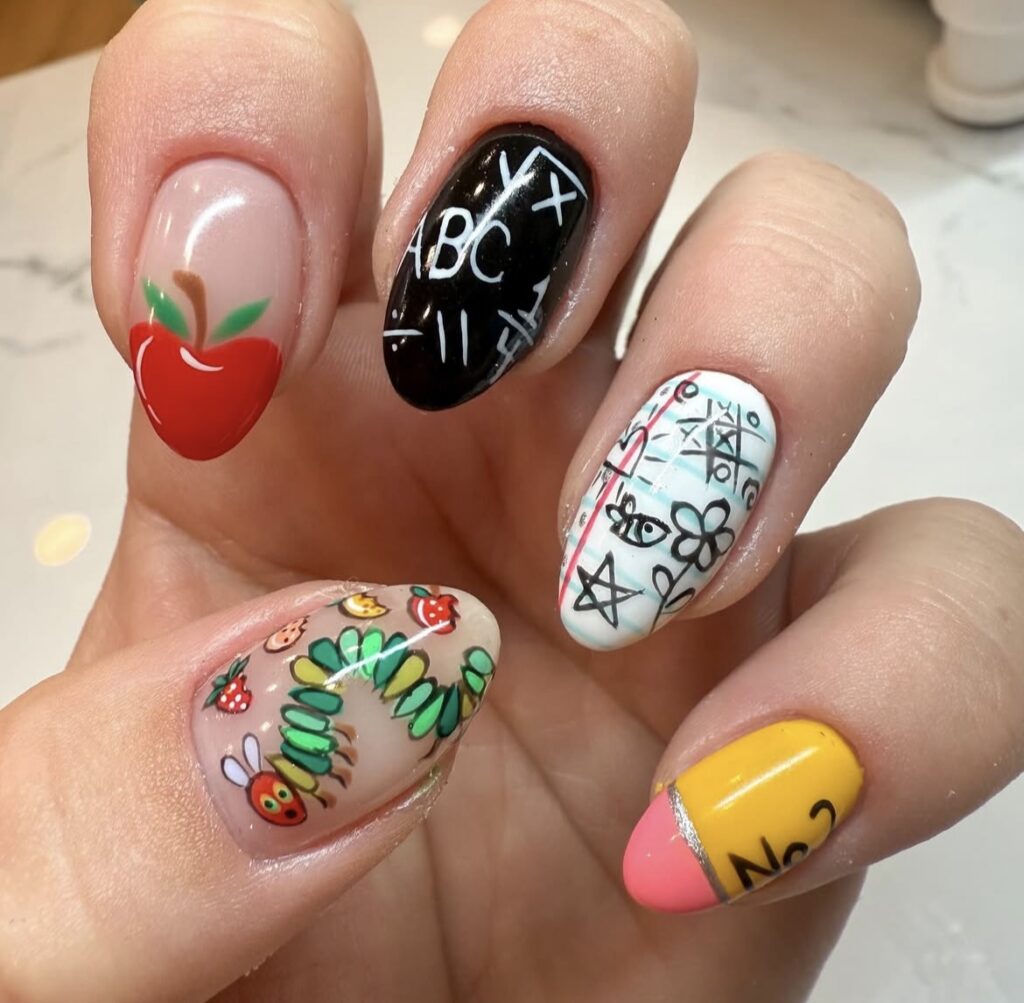 A little mix of color, a little touch of creativity – classroom essentials reimagined as nail art!