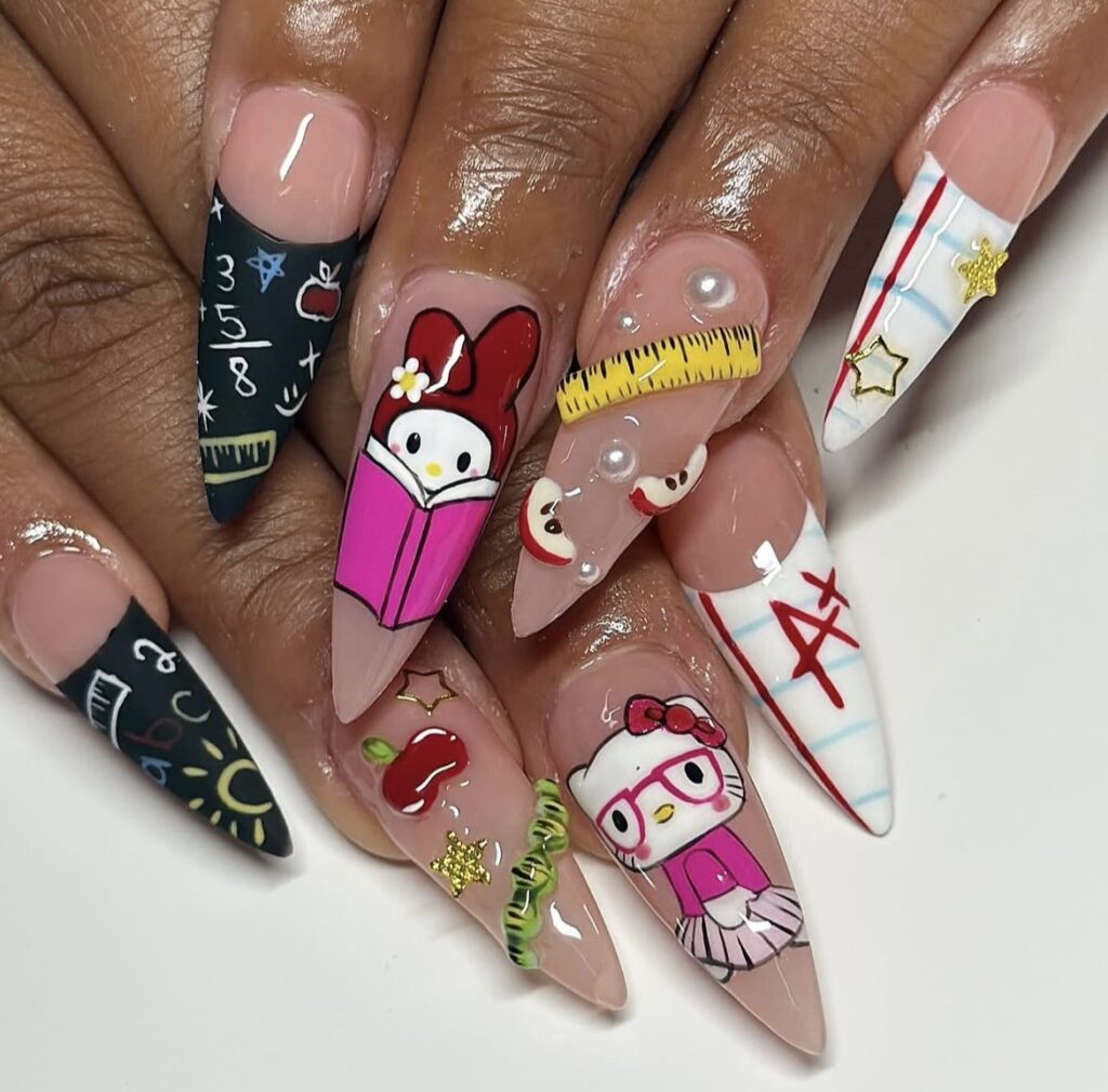 If you’re a hello kitty fan, then these back to school nails are for you!
