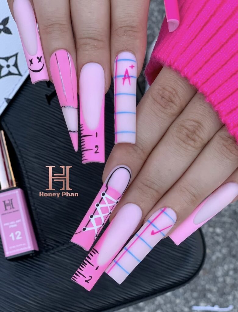 25. Pink Back to School Nails